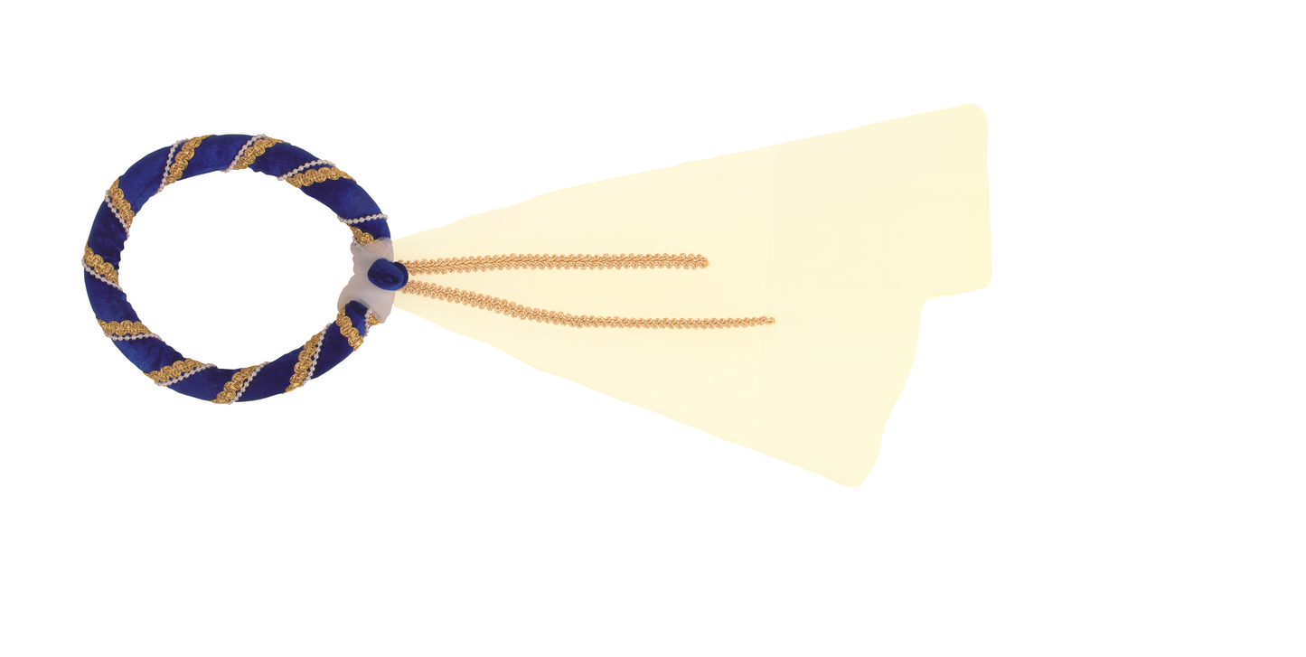 Blue maiden wreath Isabella from VAH. The beautiful maiden wreath from VAH consists of a soft foam ring covered with blue velvet-like fabric. A golden ruffled ribbon wraps around this. A veil made of white tulle fabric and a blue floral decoration is attached to the back. The diameter is approximately 14 cm. With this magical maiden wreath you immediately immerse yourself in the world of queens and princesses from the Middle Ages.