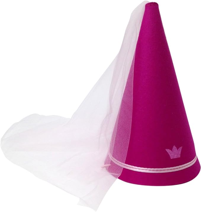 Dressy princess pointed hat for children made of real wool felt and tulle with elastic band.