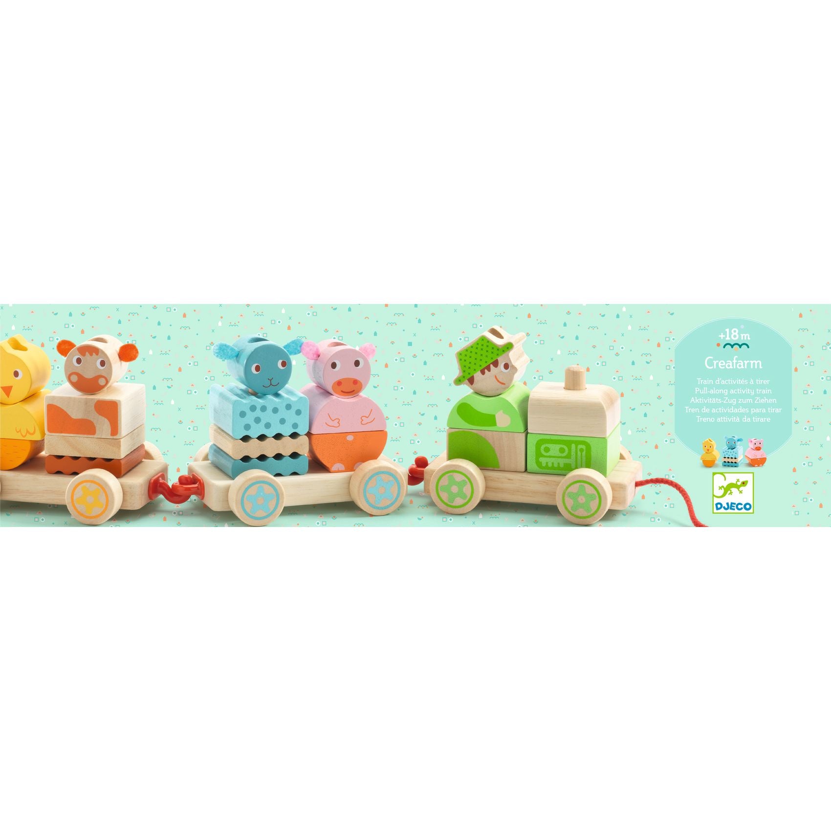 Activity train: assemble, create and pull.20 pieces for a variety of combinations.For children who are just learning to walk.Rubberwood from sustainably-managed forests.