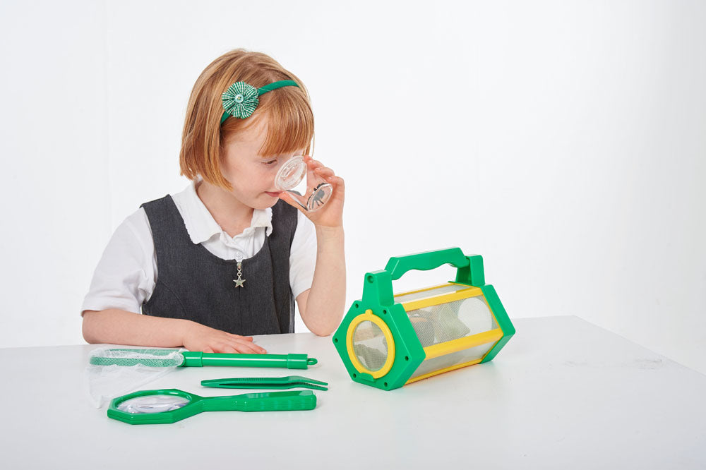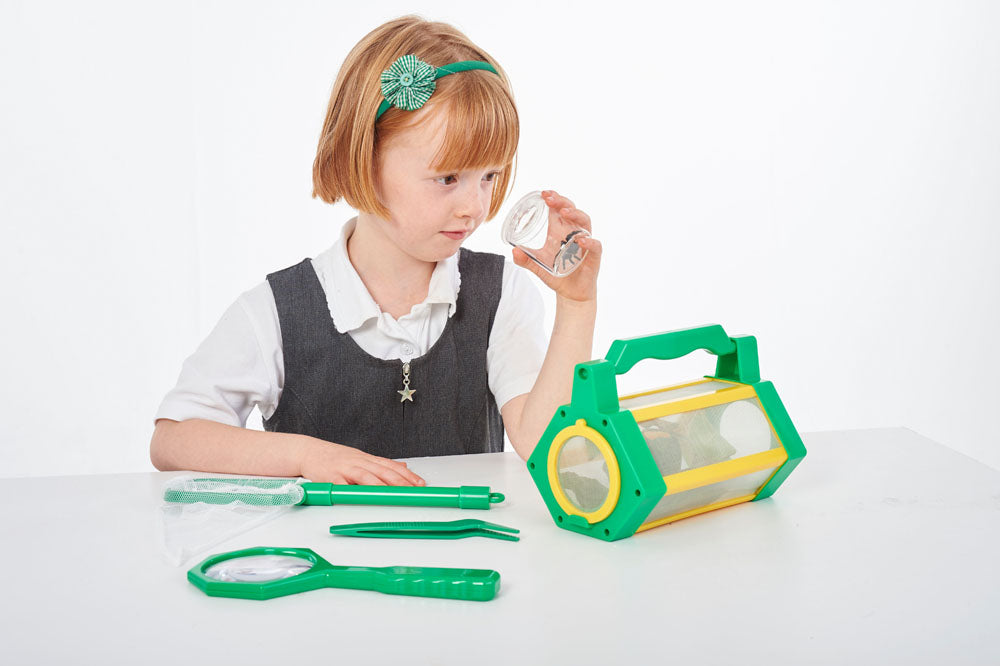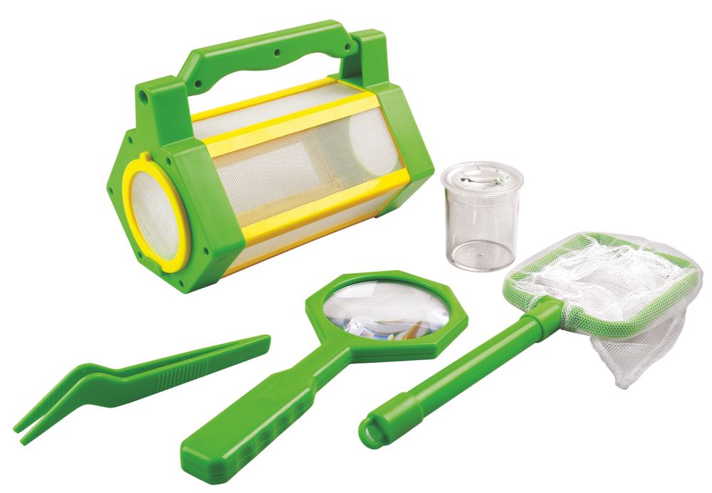 Observe living creatures or plants in the bug barn. Additional ventilated viewer pot with micro ruler, net, magnifier, tweezers & instruction manual included.