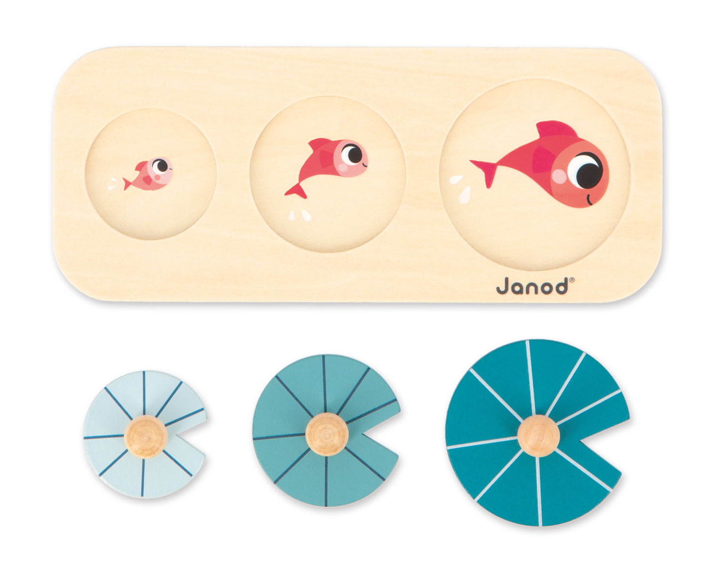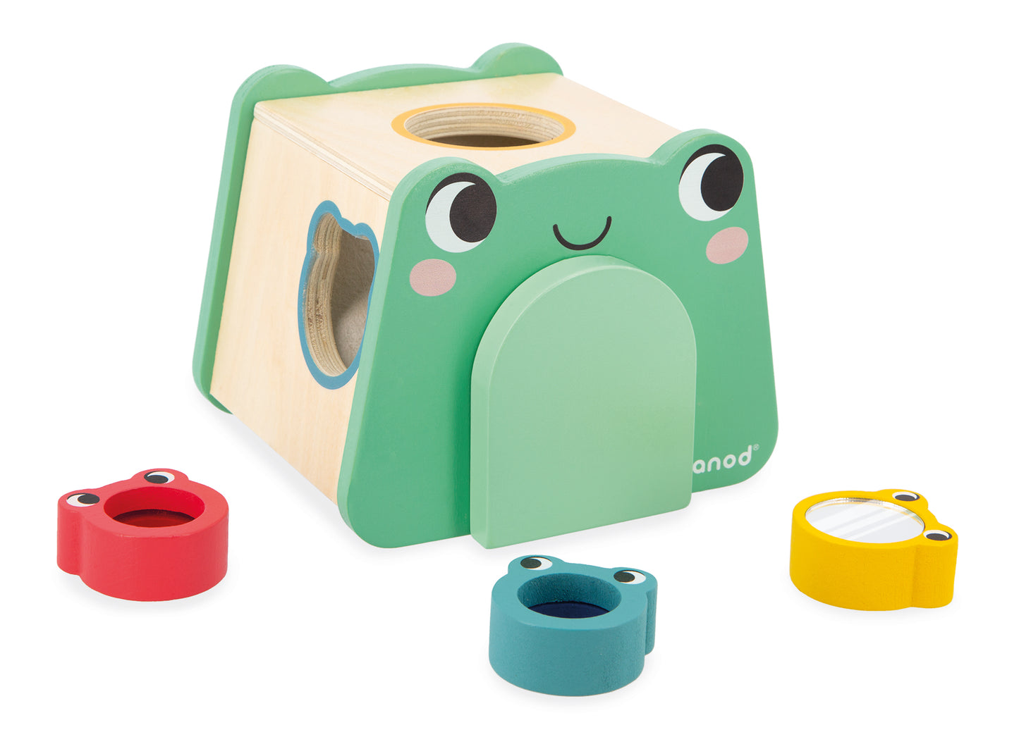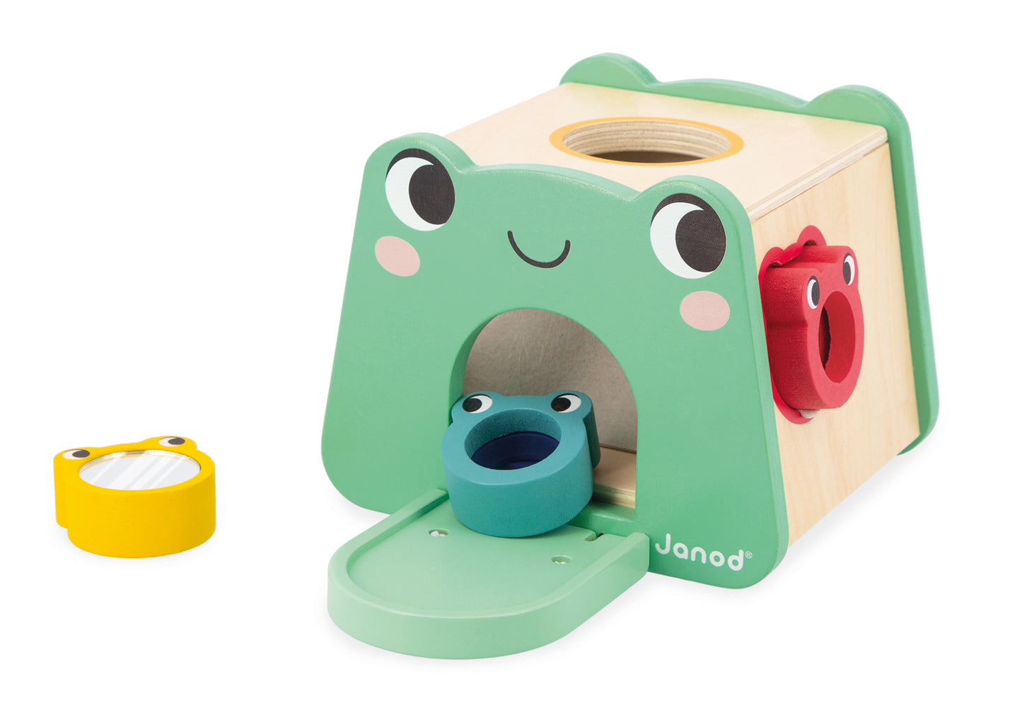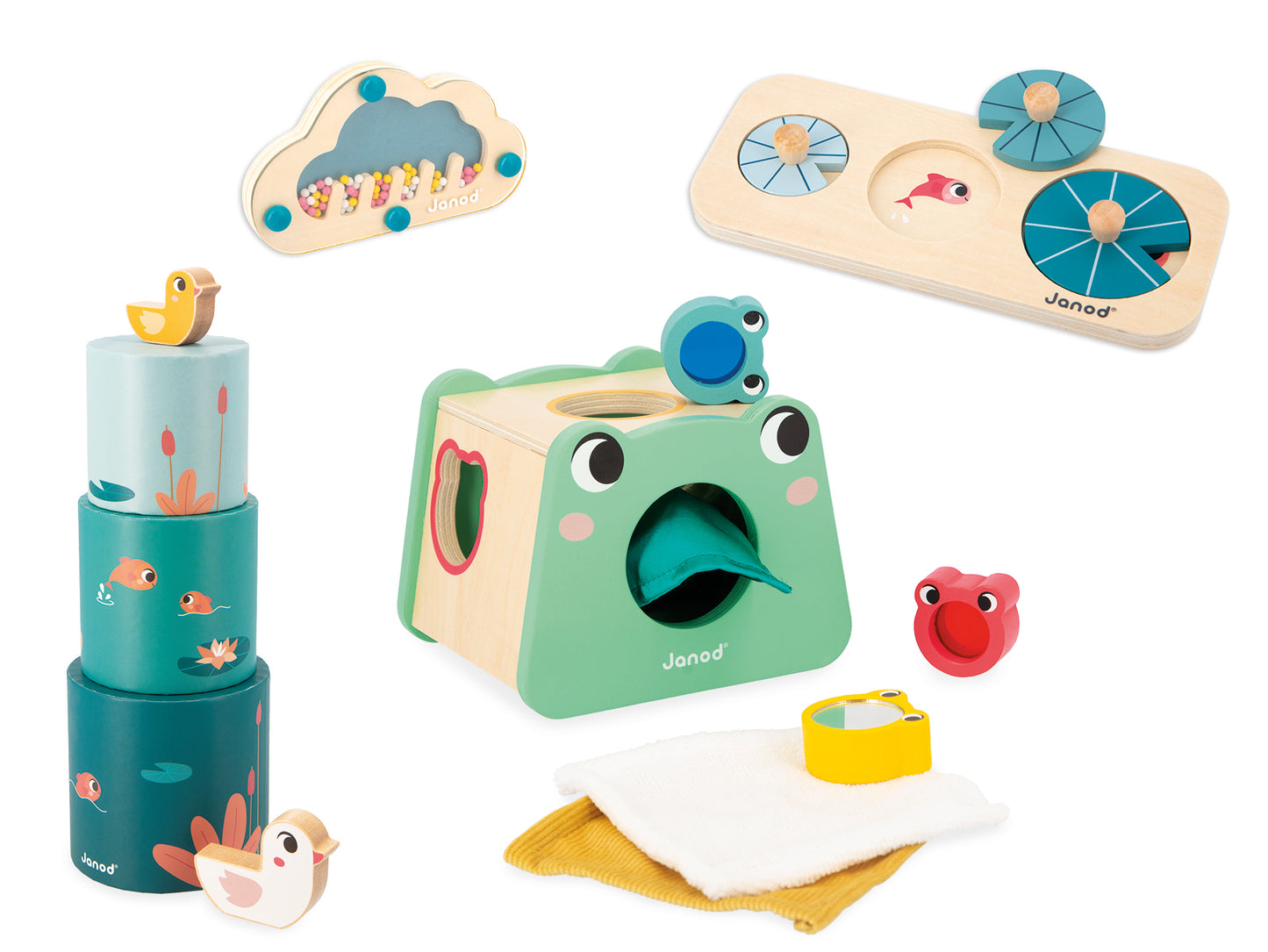 Adventures await with a Janod box: a complete box comprising 4 toys designed with children’s early learning in mind. This box has been developed in collaboration with a psychomotor specialist to help gradually promote your child’s psychomotor development and future skill acquisitions. The contents include a sensory shape-sorting box, a 3-piece pyramid with 2 wooden ducks, a cute rain stick and a 3-piece peg puzzle. These 4 wooden and cardboard toys each boast a different child-stimulating function. A detailed leaflet is also supplied to help you make the most out of the box. It provides information regarding the areas of development for children aged 12 months, in addition to descriptions of each toy and its educational value. There are 4 Janod Boxes in total (12 months, 18 months, 24 months and 36 months); each of which has been designed specifically for the age range in question. FSCTM wood and cardboard early-learning toy for children aged 12 months and up.