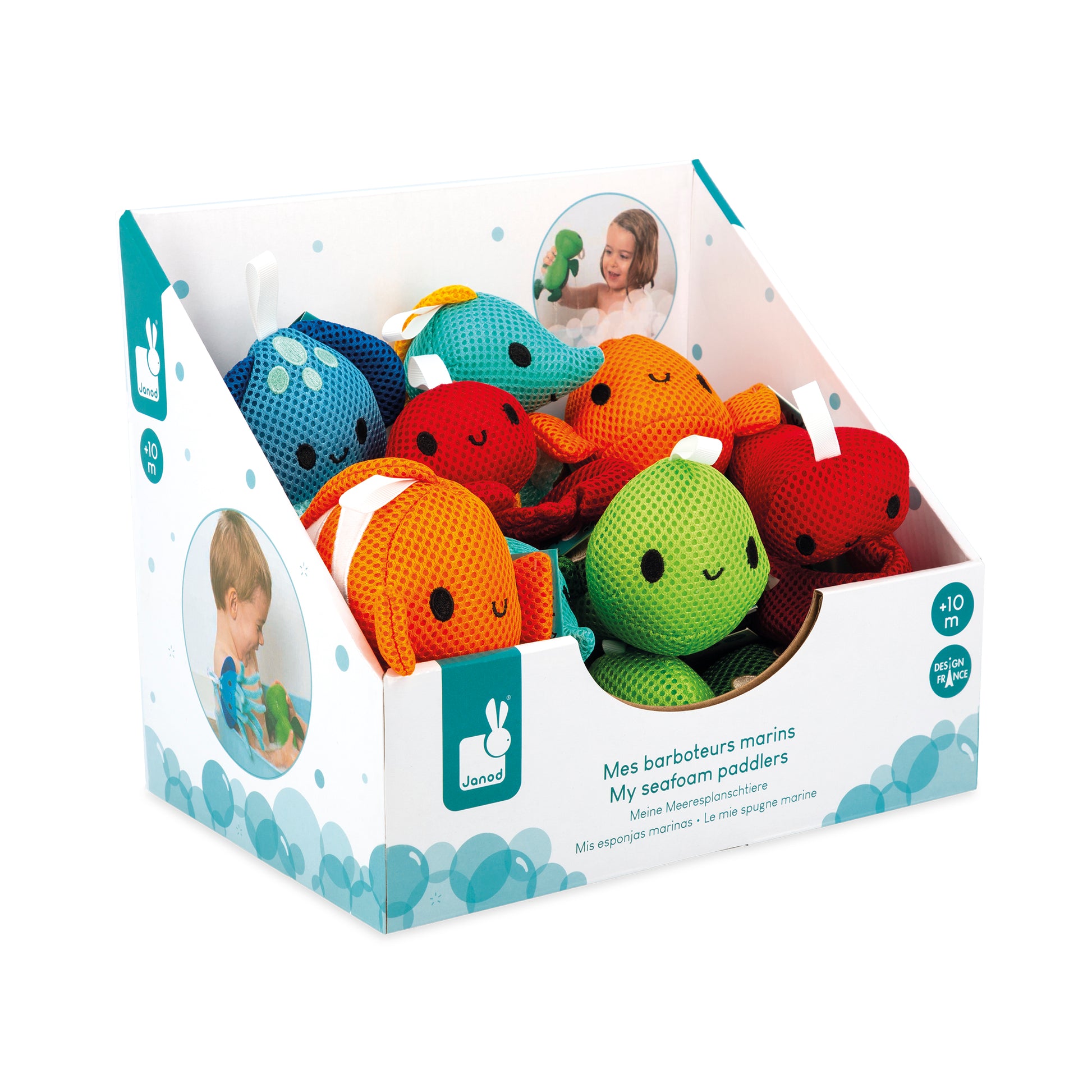 Help your child on the path to autonomy with these lovely bath sponges! This assortment consists of 5 marine animals: a turtle, a lobster, a seahorse, a clownfish and a squid. Simply wet them and add some soap to make them foam up. Suitable for little ones' hands, these bath sponges will help you to teach your child to wash themselves while having fun. Bath toy for children aged 10 months and over.