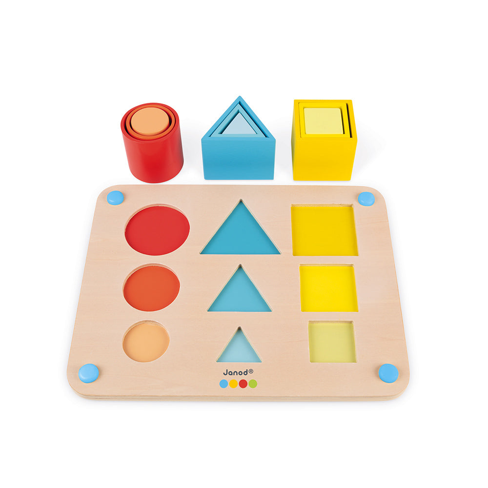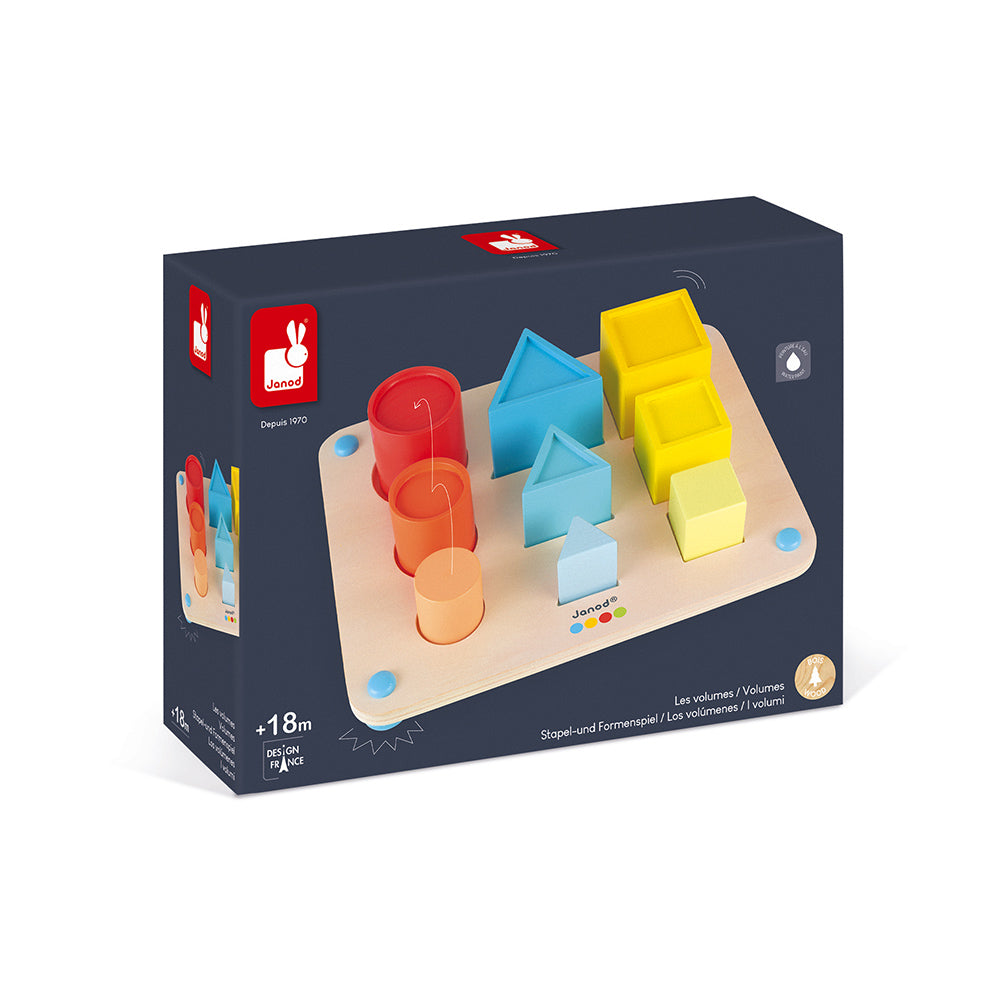 An early learning toy that is ideal for learning about volumes while having fun. Offers 3 play options: insert, stack or interlink! As a clever feature, this board is equipped with silicone non-skid feet for added stability. This product develops: fine motor skills, awareness of shapes and colours and visuospatial construction.