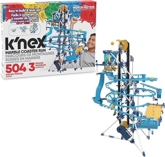 Get ready for a whole new way to play with K'NEX with the K'NEX Marble Run with engine. This set includes 3 design templates with easy-to-assemble components for a fun building experience. Assemble one, then disassemble it to build another. Or get creative and design your own. Great for STEM learning and an educational toy that will help prepare your child for complex learning. Watch your marble race on the track with 4 different paths. Where will your marble end? This set includes over 350 K'NEX pieces to assemble your marble masterpiece. Use the motor for maximum mechanical pleasure. Suitable for ages 3 and up