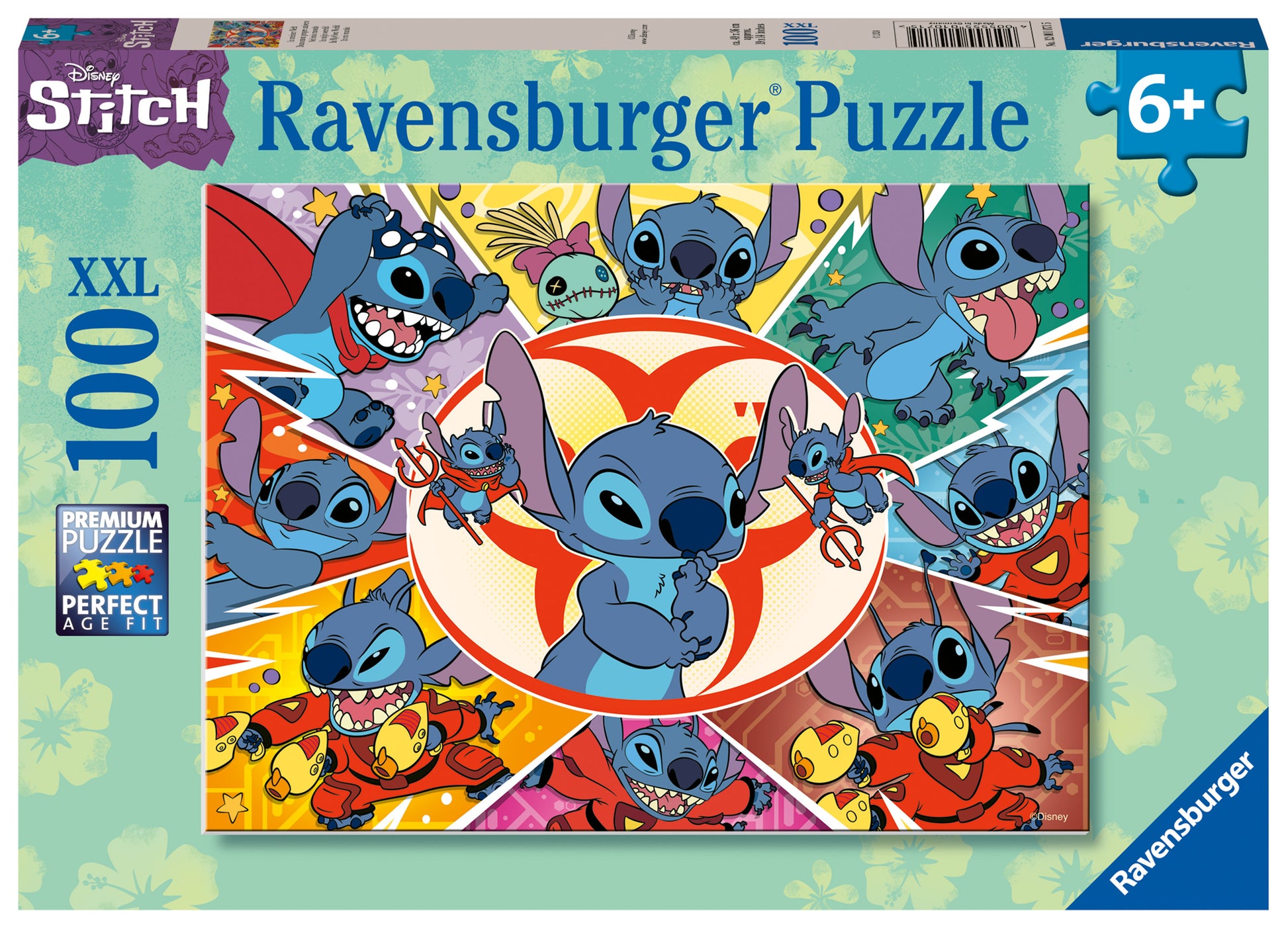 Puzzle Stitch while he's in his own world. This action-packed 100 piece puzzle shows cheeky Stitch causing mischief! A definite must have for any Stitch fan. Our 100 piece kids puzzles with XXL large pieces are crafted with premium quality materials and measure 49 x 36cm when complete. Great puzzles for Children 6 years old and up. Fully complies with all necessary UK and EU testing standards.