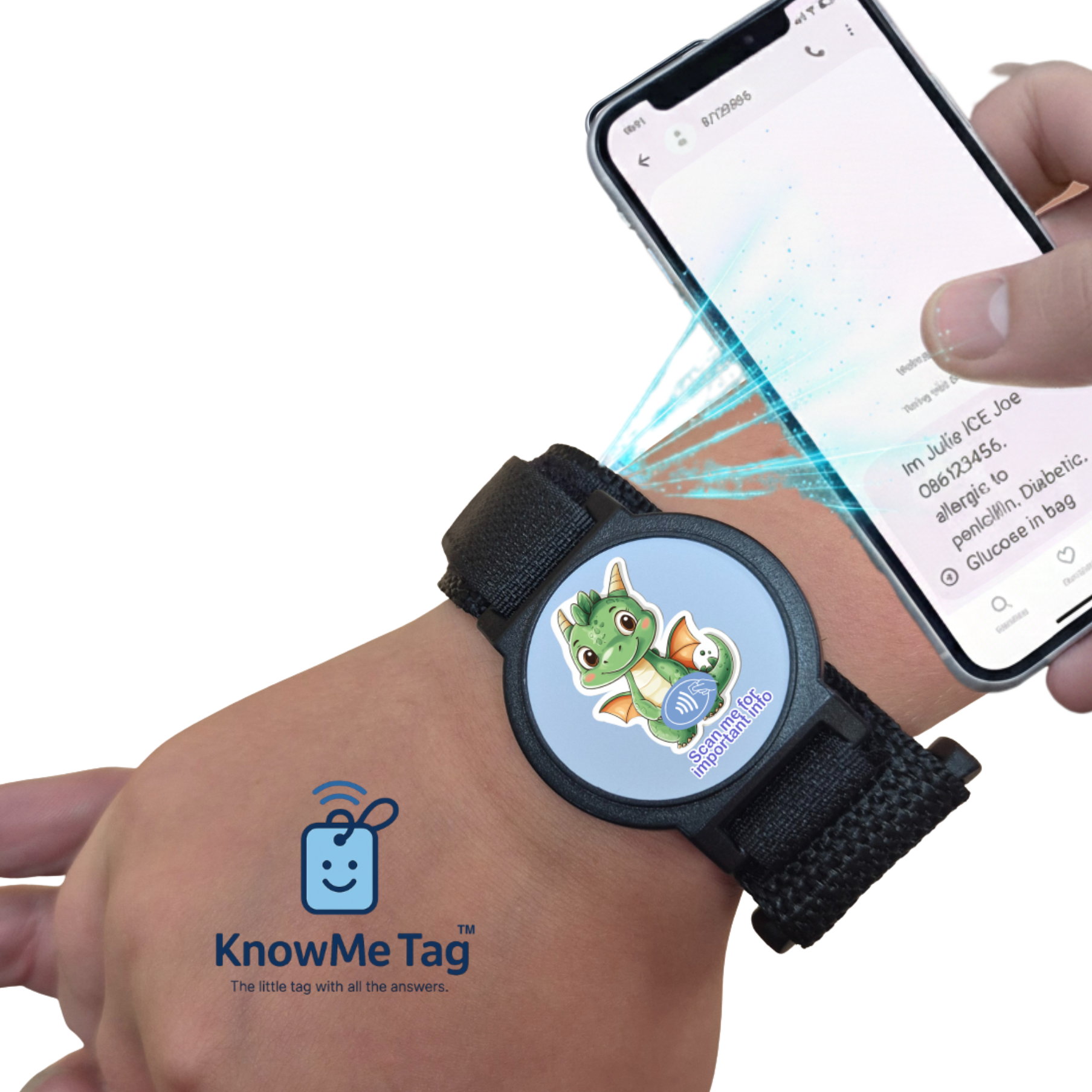 The KnowMe Tag™ Velcro Bracelet is designed to fit every wrist—young or old, big or small. With its soft, adjustable strap and discreet NFC tag, it’s a gentle way to carry essential information wherever life takes you.